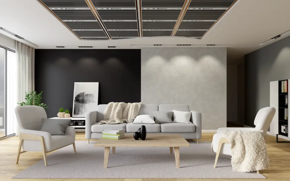 • Estetyka wnętrz – panele grzewcze na podczerwień, promienniki ciepła i folie grzewcze są niewidoczne lub dyskretnie wkomponowane w wystrój,